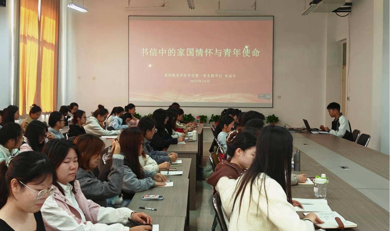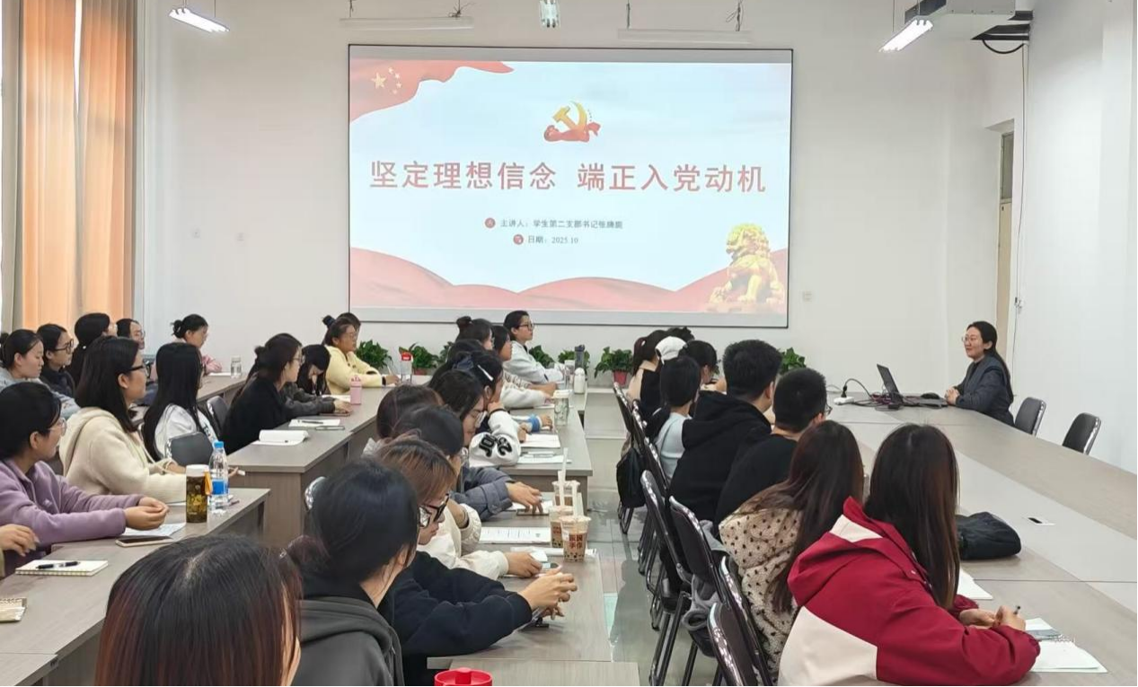 学生第一党支部书记朱冠宇讲授《书信中的家国情怀与青年使命》,通过解读多封承载初心的书信,引导入党积极分子感悟精神力量,把家国情怀融入思想行动。