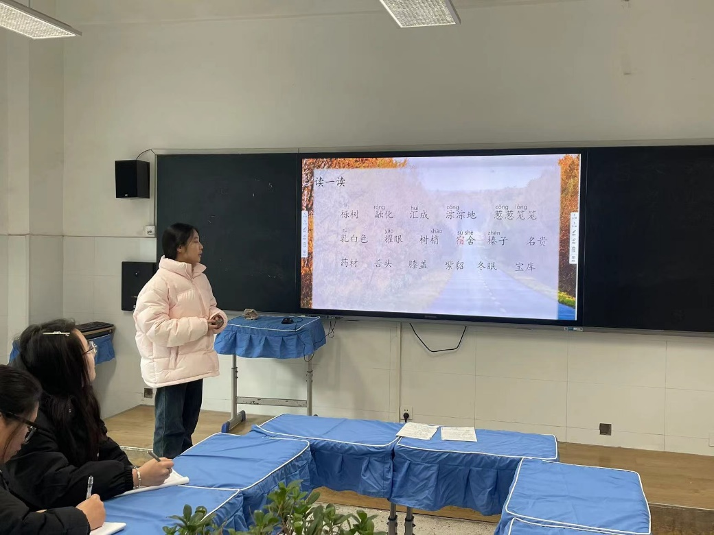 语文四组在坊主张捷老师的带领下,同学们展示了《坐井观天》《秋天的雨》等微课。张婕老师清晰指出学生的优缺点,并对学生们提出了进一步的要求:需要关注学生学情,多研读小学教材把握教材的重点。