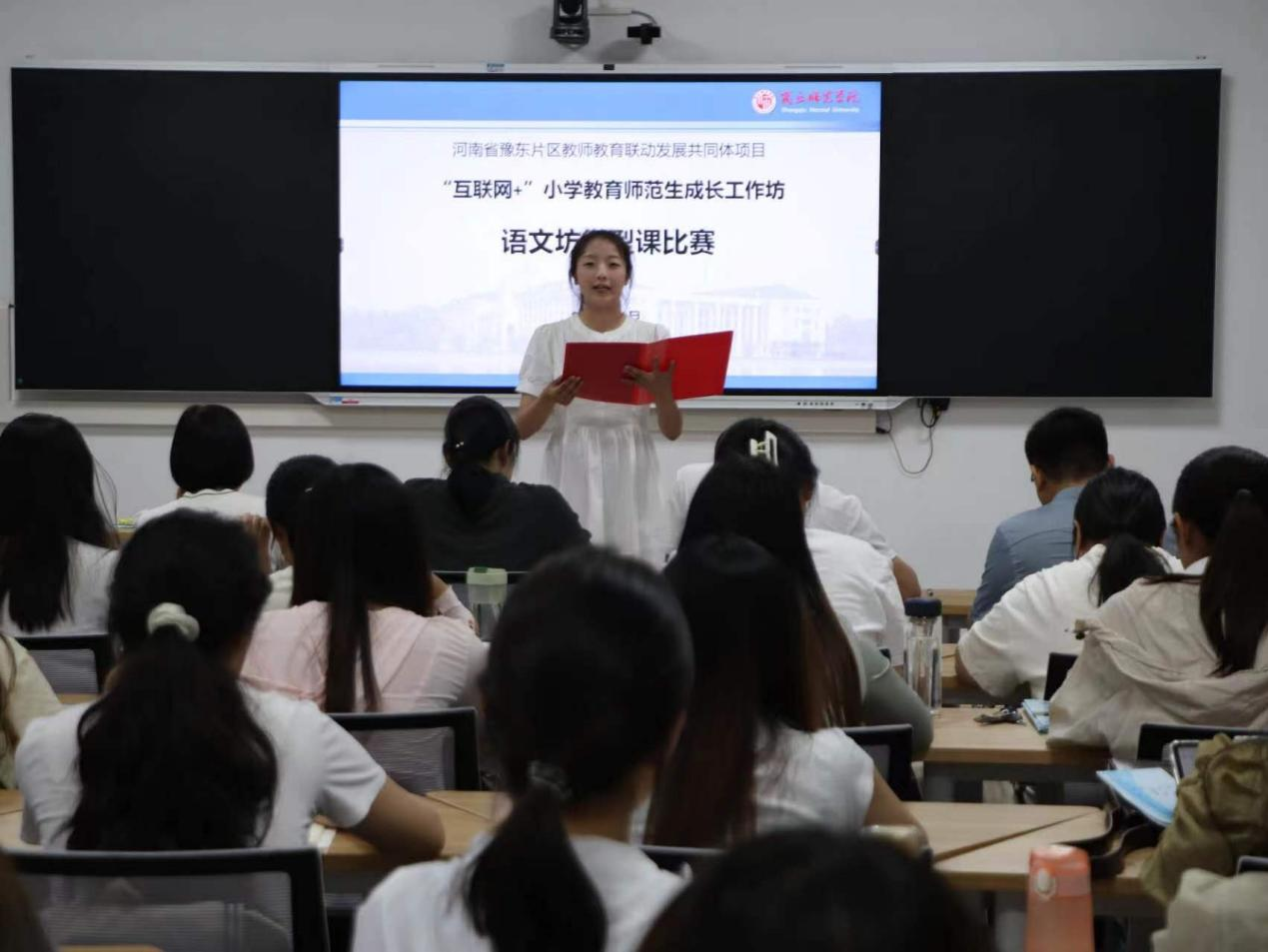 百舸争流展风采,教坛竞技绽芳华。5月31日下午,2138CC太阳集团成功举办“互联网+”小学语文师范生成长工作坊微型课比赛。2138CC太阳集团副院长李战营,学系主任王丽,工作坊坊主李娟、张捷、马娜、侯德重出席活动,小学教育专业全体学生参加活动。