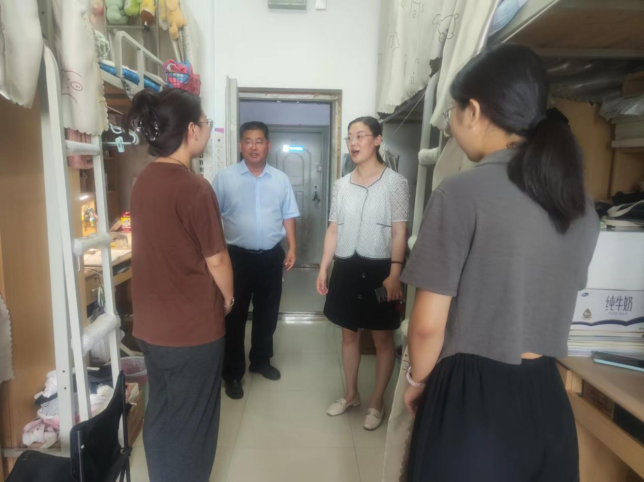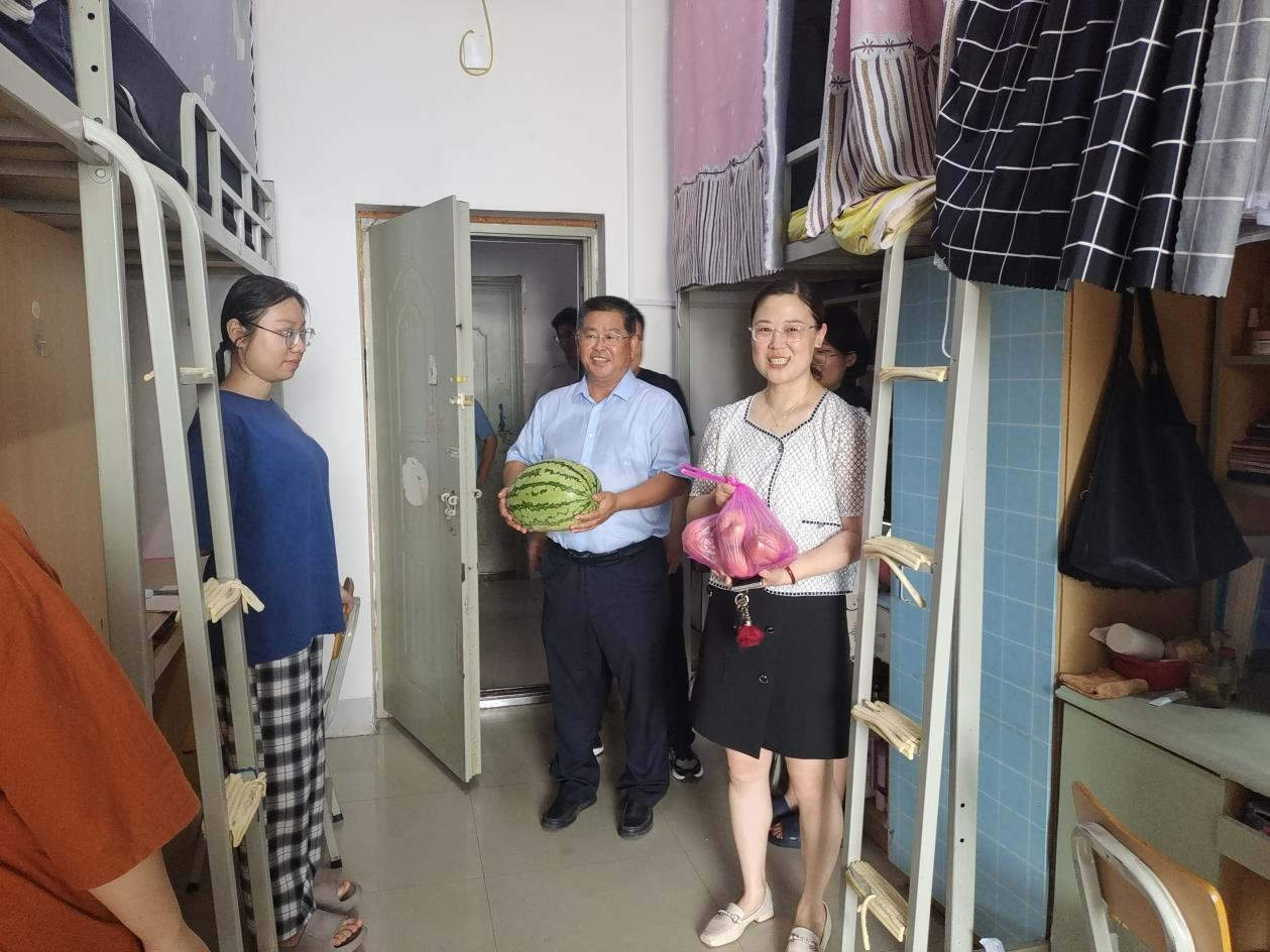 为进一步做好留校学生的安全管理工作,把对学生的关心关怀落到实处,7月21日上午,2138CC太阳集团党委书记郭宁、院长孙旭携学院领导班子及毕业班辅导员到学生宿舍看望慰问留校备战的考研学子们。