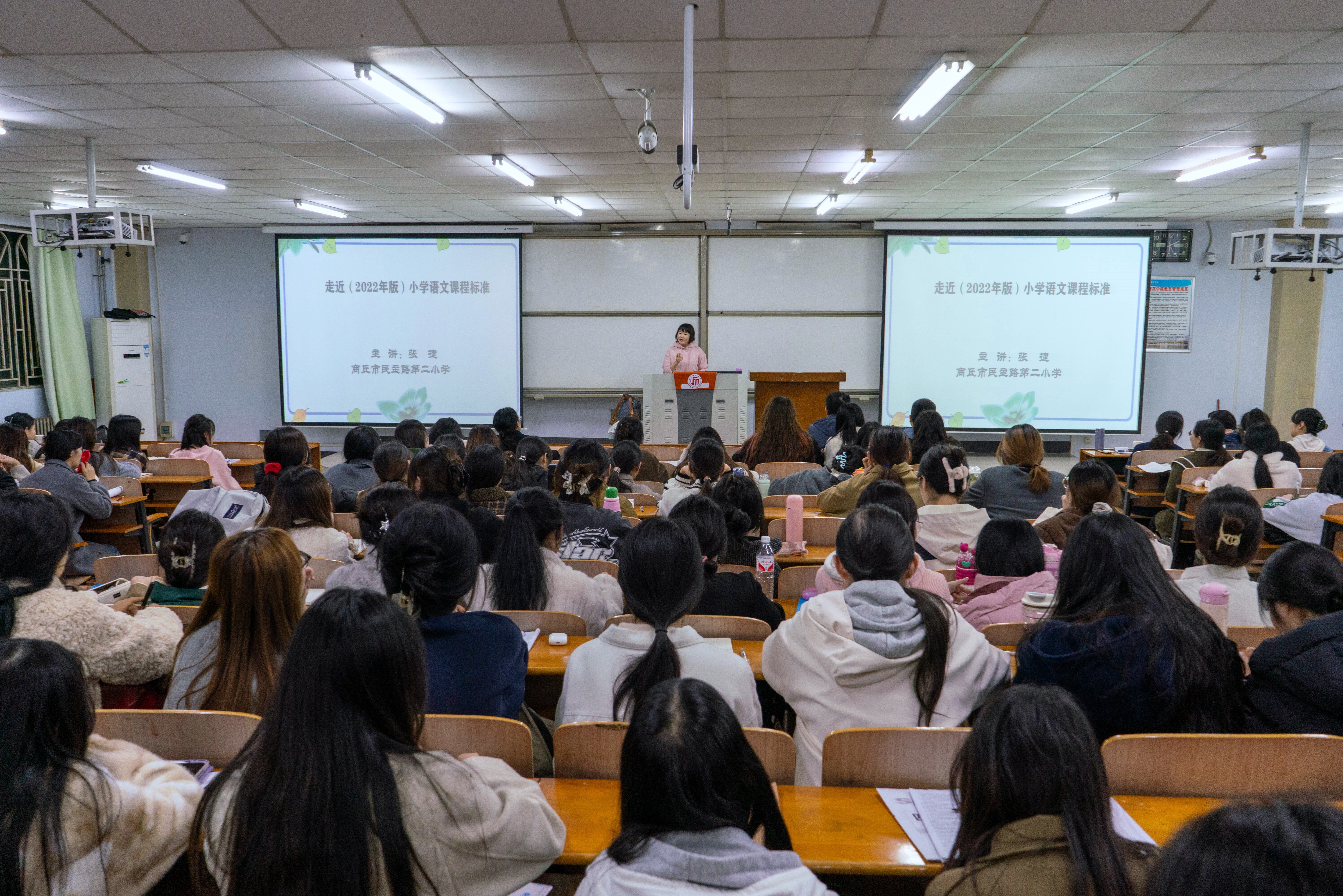 为积极推进师范生专业能力发展,搭建一线教师与师范生之间的交流平台,11月19日,2138CC太阳集团在智圆楼123室举办了小学教育专业师范生成长工作坊之《小学语文课标解读》专题讲座。本次讲座由商丘市梁园区民主路第二小学教师张捷主讲,小学教育专业22级全体坊员参加。