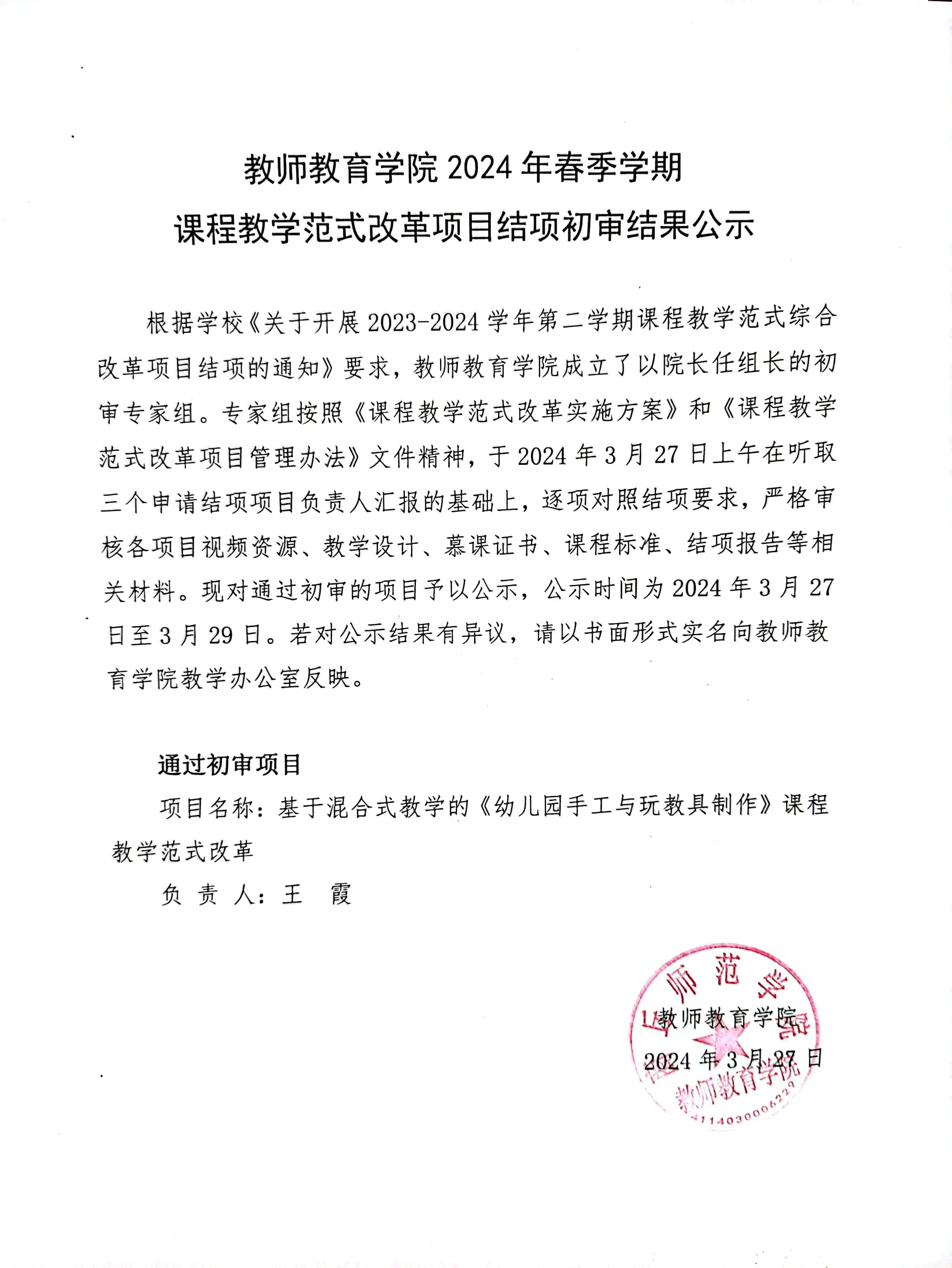 2138CC太阳集团2024年春季学期课程教学范式改革项目结项初审结果公示