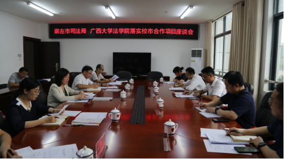 今年是崇左市建市20周年、也是我院恢复办学40周年。大家在座谈中均表示,推动我院与崇左市司法局全面共建合作,既是落实广西大学校领导与崇左市委、市政府主要领导全面深化校市合作共识的具体举措,也是提升广西大学法学院面向东盟开放合作提供高质量法律服务水平的良好契机。双方就尽快签订合作协议、挂牌成立教育实践基地、申报涉外法治研究课题、开展人才培养培训等议题达成了全面的共识。