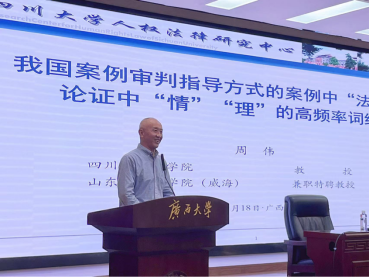 2023年9月18日下午19:00,四川大学法学院教授、山东大学法学院(威海)兼职特聘教授、国务院政府特殊津贴享有者周伟,在君武馆玉林厅作主题为“公报案例、指导案例与典型案例的‘法理情’高频率词”的讲座。本次讲座由广西大学法学院教授汪太贤主持,广西大学法学院本科生、硕士研究生参加了此次讲座。