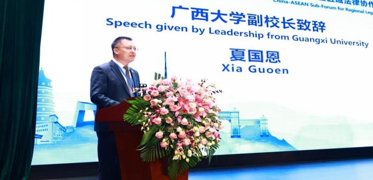我校副校长夏国恩在论坛开幕致辞中表示,希望通过加强学术交流,深化法律合作,增进中国与东盟法律法学界的相互理解与信任,充分发挥法治交流在区域合作方面的规范、引导、促进和保障作用,为营造中国与东盟国家互利双赢的法律环境而努力。广西大学将不断完善论坛机制,努力将中国-东盟区域法律协作论坛打造成为中国与东盟法律交流合作平台,不断促进中国与东盟的法治文明交流与法治人才教育培养,为广西大学国际化水平和“双一流”建设注入新的活力,为推动构建更为紧密的“中国-东盟命运共同体”贡献力量。