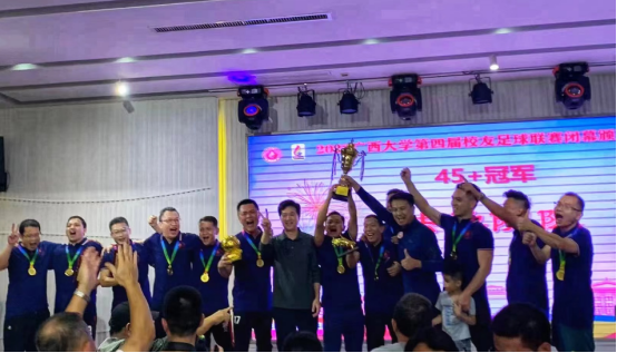 广西大学第四届校友足球联赛于10月21日落下帷幕,我院校友足球队在当天举行的(45+组)决赛中以3:0击败农学院校友队,首次捧起该项赛事的冠军奖杯。