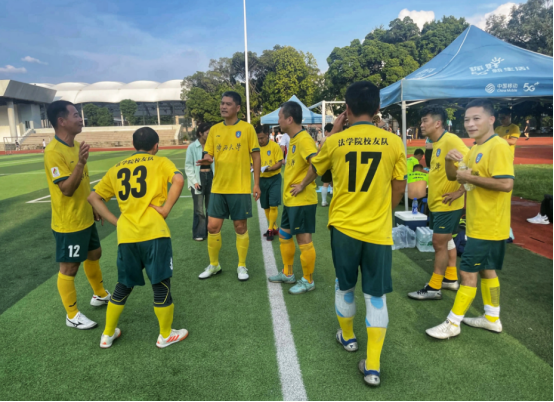 法学93级校友梁枫光自2019年以来一直担任法学校友足球队领队,他表示,全体队员非常团结和珍惜这次比赛机会,不少队员是在外地的公检法单位工作,周末克服了工作生活等诸多困难前来参赛。“有的队员周末中午2点才从柳州乘坐动车赶往南宁站,傍晚6点比赛结束后,来不及吃上一口饭就立即动身返回柳州”,“这体现了校友们为母校、为法学院荣誉而战的拼搏奋斗精神”。在颁奖典礼上,法学校友队员们纷纷表示,三十年前大家在校读书期间,法学院学生足球队一直都是校运会足球赛的热门球队,“大家始终都怀着一颗冠军的心”,本届比赛法学校友队展现了出色的技术和团队精神,“大家由衷感谢母校创造机会让我们得以圆梦绿茵场,希望能用这座冠军奖杯作为礼物向广西大学法律系恢复办学40周年送上最真挚的祝福”!