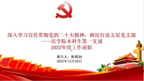 本科生第二党支部书记庞红主要围绕工作开展情况、存在的问题以及未来工作安排三方面展开。在工作建设方面突出政治本色,加强政治建设;突出思想引领,加强思想建设;突出党员标准,加强组织建设;突出效能导向,加强制度建设。针对理论学习不够深入、工作不够创新以及工作交接密度不够等问题明确解决方案,全面加强政治理论学习,深入贯彻党的二十大精神,科学统筹开展支部工作;结合学生思维特点,开展特色活动;突出学科特色,打造党建品牌,立足法学专业,发挥党员标杆作用,加强先进典型选树力度。