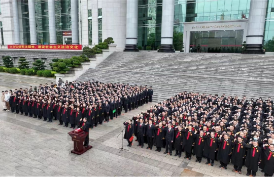 上午8点30分,师生代表与高院全体法官、干警共同参加升旗仪式和宪法宣誓仪式,深切感受到宪法的尊严和身为法律人的重任。