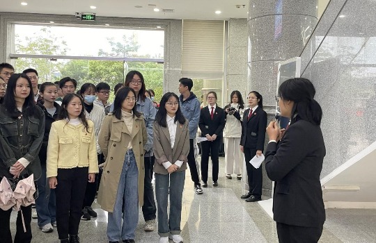 在诉讼服务大厅,通过工作人员讲解引导,师生深入感受了合并一审、二审、再审、保全等诉讼环节的一站式诉讼服务。在科技法庭,师生们看到法官远程开庭、当事人线上诉讼、法庭无纸化审理,深刻感受到“让数据多跑路,让群众少跑腿”的司法理念,纷纷为广西法治建设走上了科技化、智能化、信息化的快车道点赞。