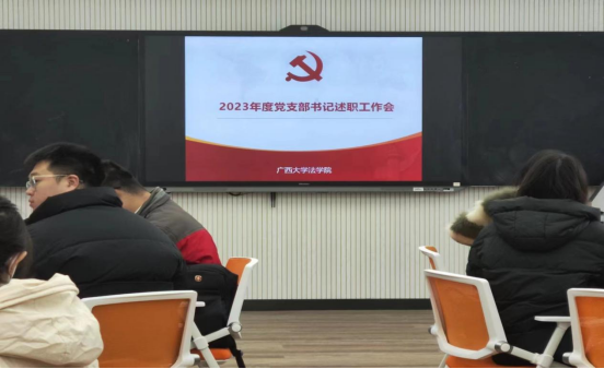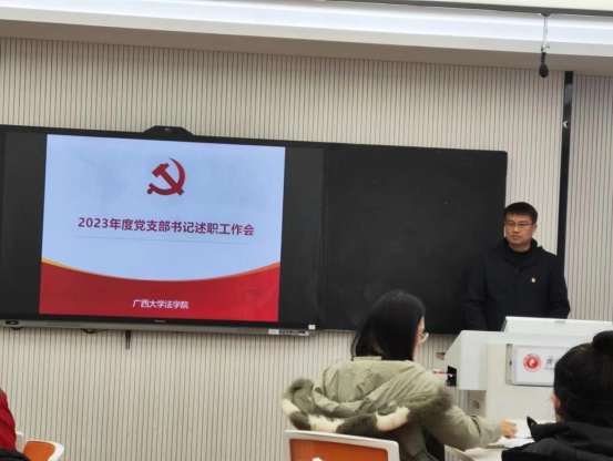 法学院教工第一党支部支委覃炳文、教工第二党支部书记陈思静、教工第三党支部支委蔡舒姝、本科生第一党支部书记陈焜如、本科生第二党支部书记庞红、本科生第三党支部副书记陈颖娇、研究生第一党支部书记黄峥喻薇、研究生第二党支部书记米诗瑶、研究生第三党支部书记黄诗雅分别作党支部书记述职报告。