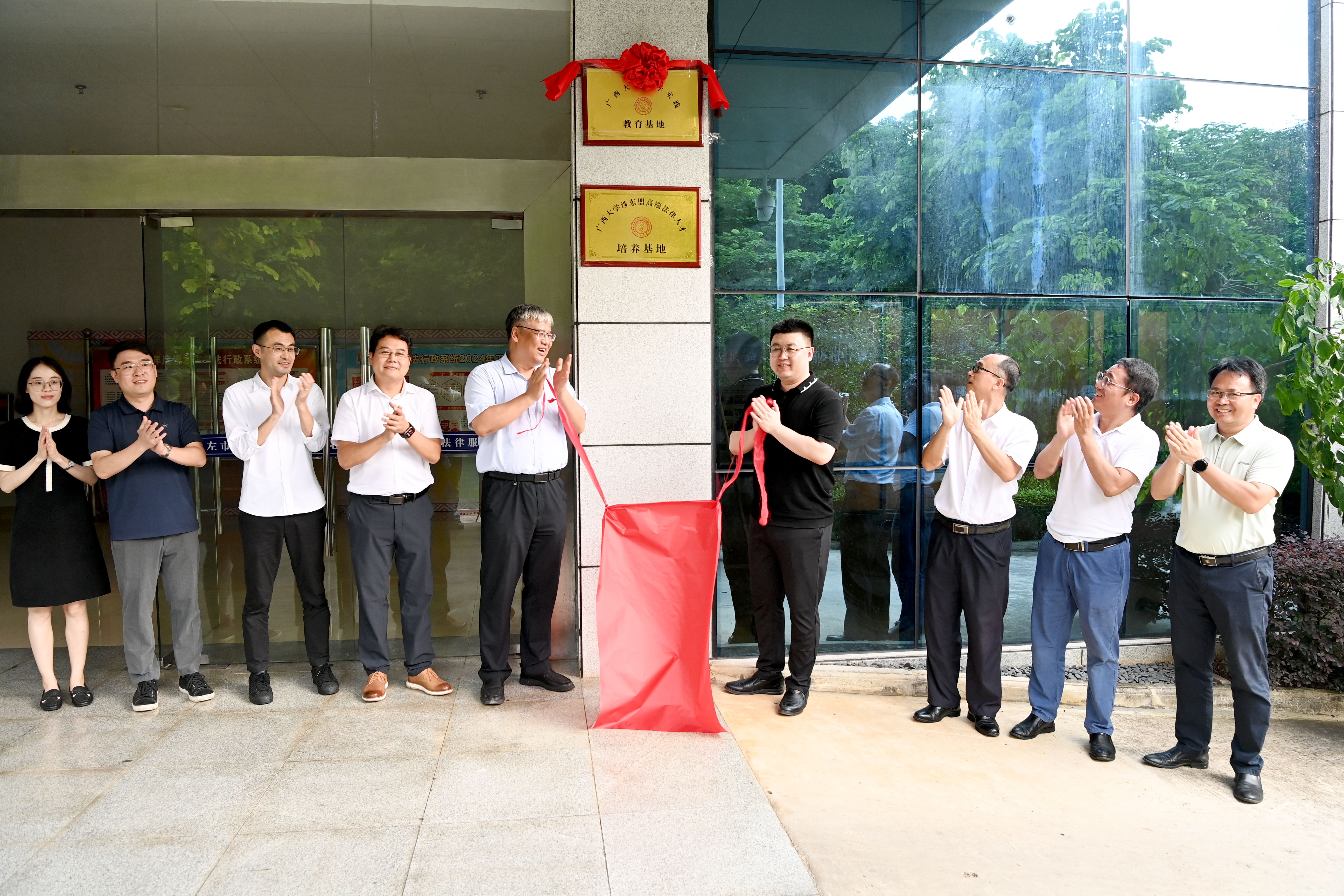 崇左市市场监督管理局、司法局相关负责人与我院领导共同为基地揭牌,在座谈中围绕协议事项内容,探讨如何发挥各自优势,在涉外法治理论和实务研究、涉外法治人才培养等领域推动深度合作。