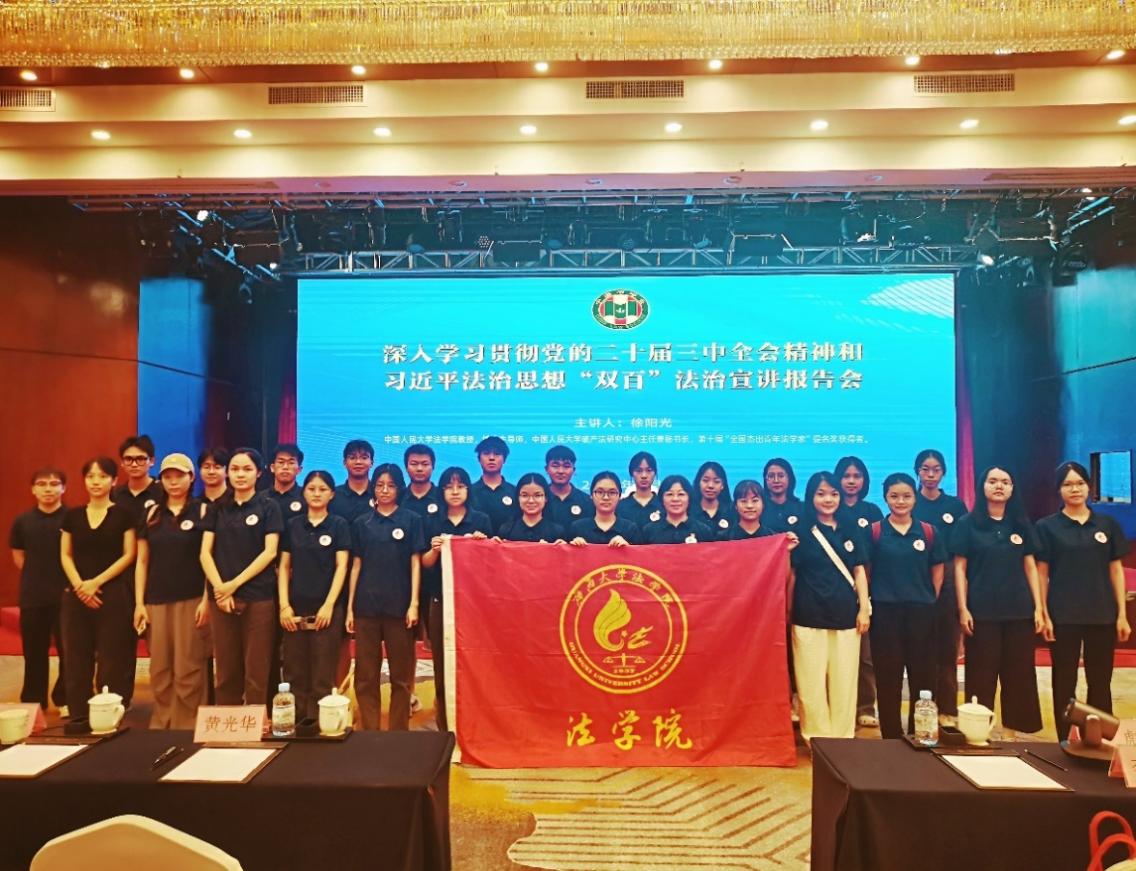 9月20日下午,广西壮族自治区学习贯彻党的二十届三中全会精神和习近平法治思想“双百”法治宣讲报告会在南宁召开。我院组织师生代表在主会场参加报告会。报告会由自治区党委政法委副书记李玉振主持。