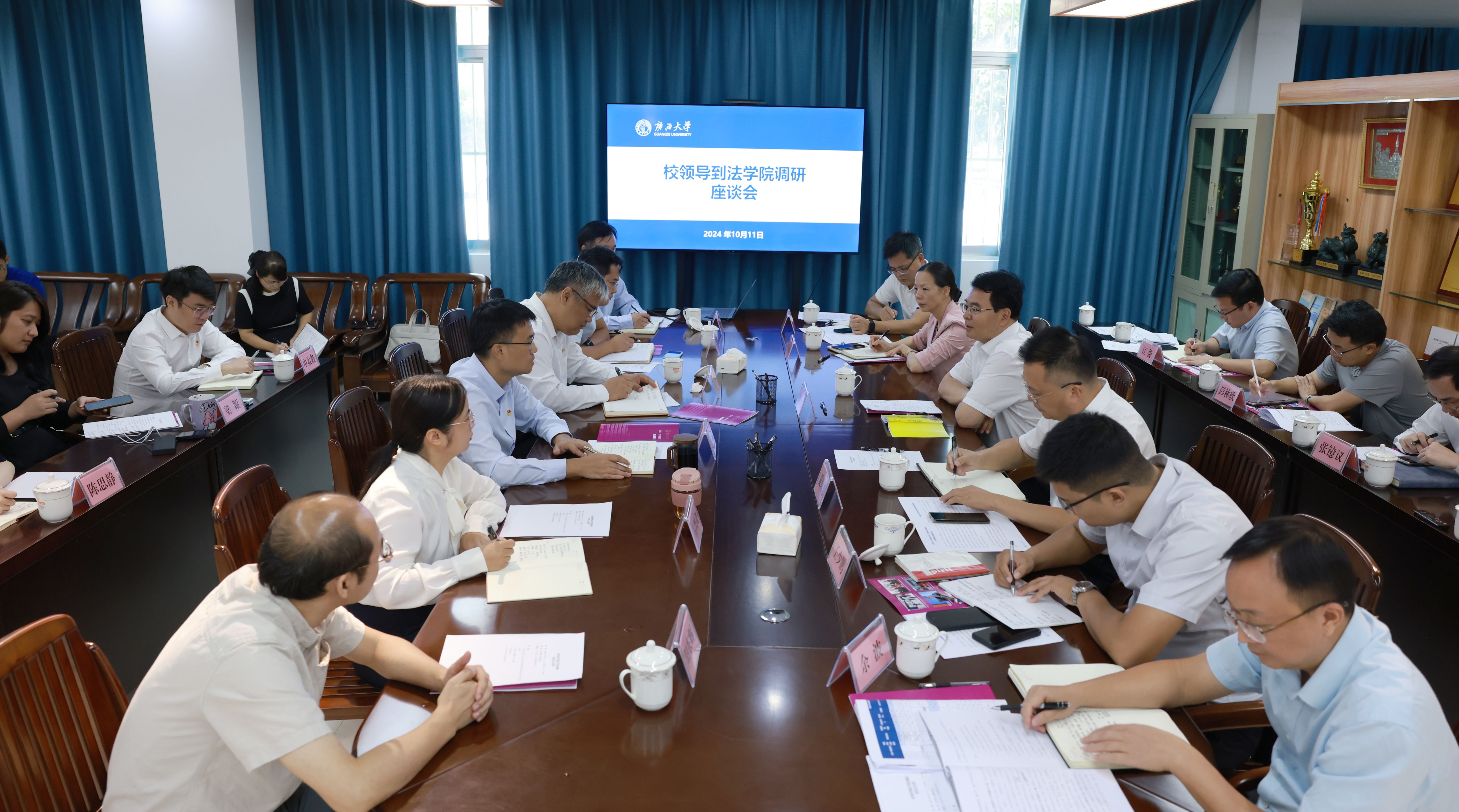 10月11日上午,校党委书记李国忠带队到法学院调研指导工作,校党委常委、副校长夏国恩陪同调研。