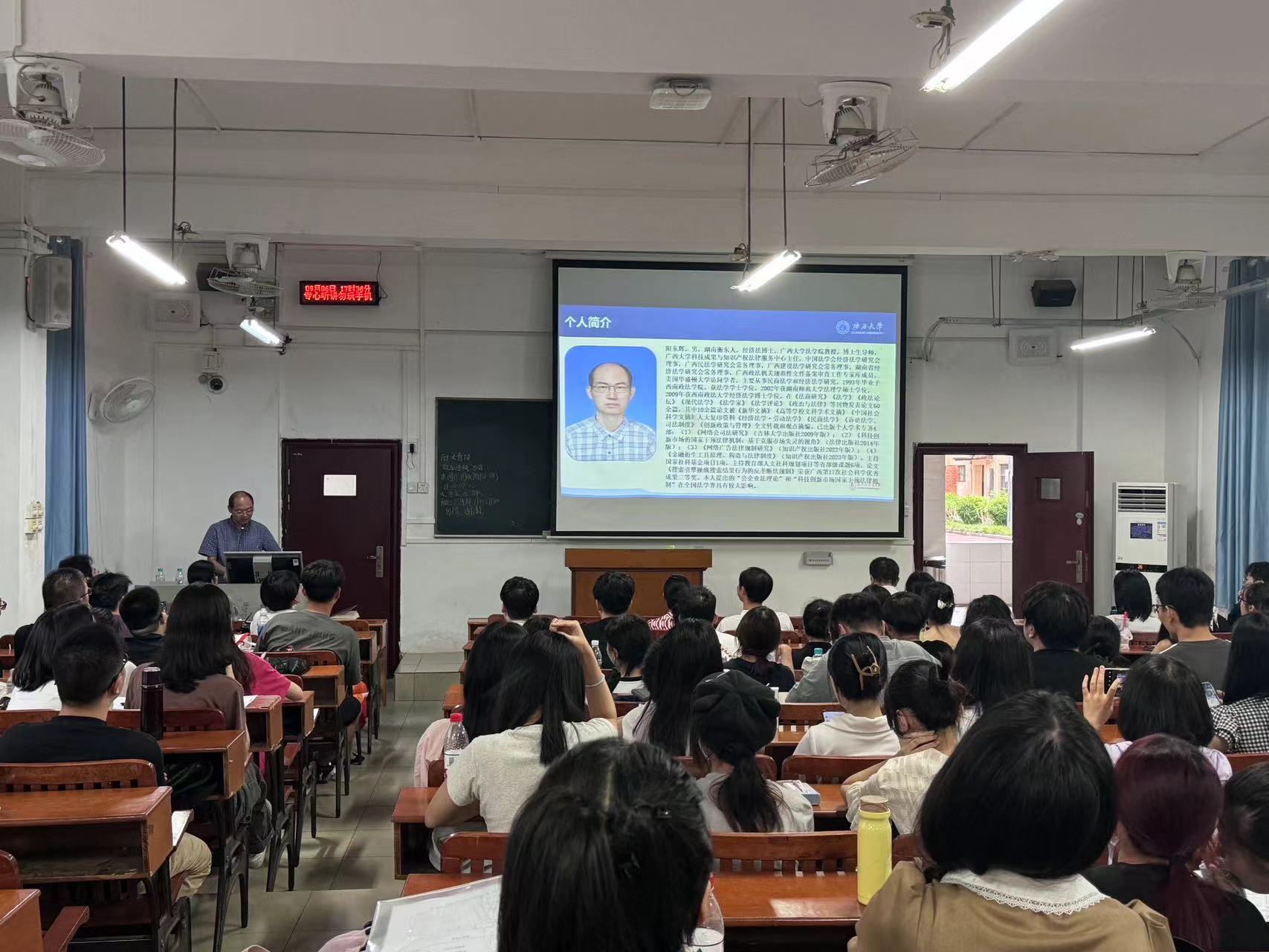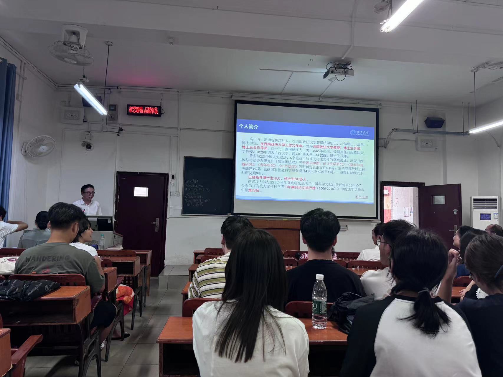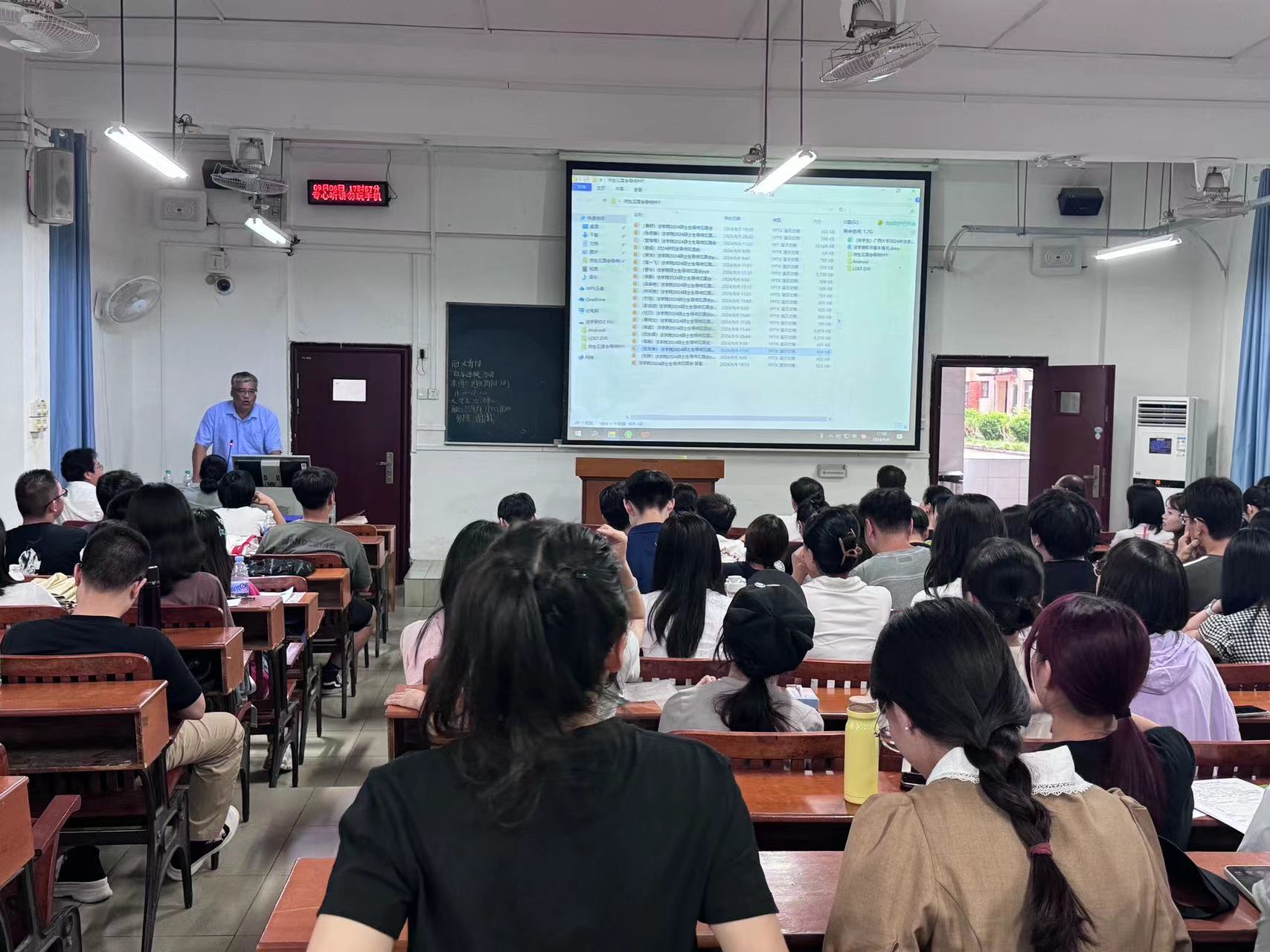 金秋送爽,新学期的生活也逐渐步入正轨。为使研究生新同学进一步了解学院的各位导师,促进师生双选工作的顺利推进,法学院于9月6日下午17:00在第二教学楼101教室召开2024年硕士研究生师生见面会。此次见面会由熊超副院长主持,到会导师分别上台简要介绍了自己的研究方向以及对招收学生的要求。最后,院长许光耀教授作了总结讲话,并对研一新生们的到来表达了期许和欢迎。因时间冲突,部分导师未能到达现场,但也都准备了个人简介PPT,由熊超副院长代为介绍。
