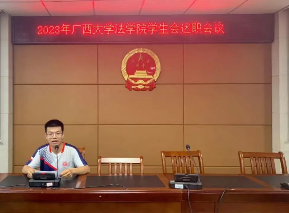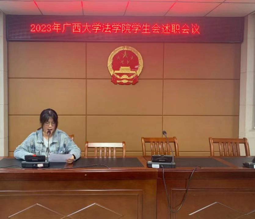 为更好地服务同学,促进法学院学生会发展,2023年12月15日下午四时,广西大学法学院学生会2023年度秋季学期述职大会在法学院201会议室准时召开。法学院学生代表团参会表议。
