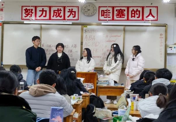 张雨晴同学寒假期间重返母校——贺州高级中学,携手四名同窗共同进行招生宣讲,为广西大学招揽新鲜血液。