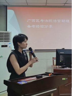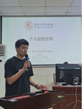 分享会首先由法学院党委副书记韦兴剑老师致辞。对计划深造的同学,她建议要积极与导师沟通,根据实际情况调整培养模式;对计划求职的同学,她结合数据呈现求职现状,鼓励大家以加倍的努力应对激烈的竞争;最后,对法学院学子,她强调“年轻人要撸起袖子加油干”,并呼吁大家要站在领跑线上,化压力为动力,继续在法学院逐梦前行,发光发热!