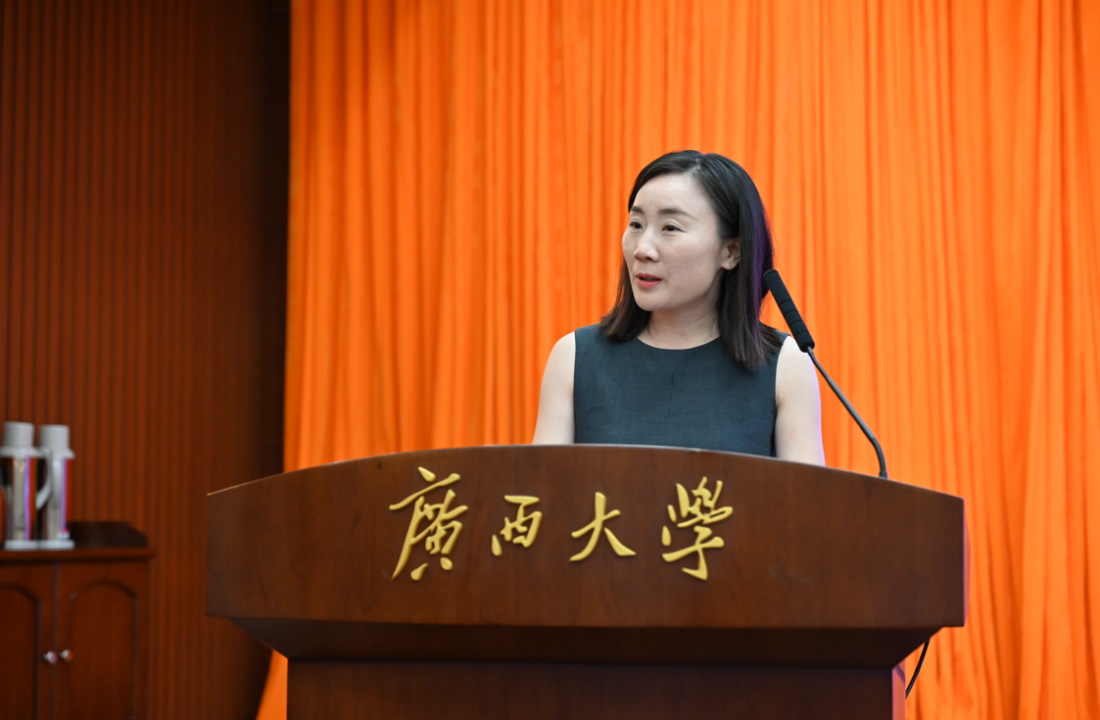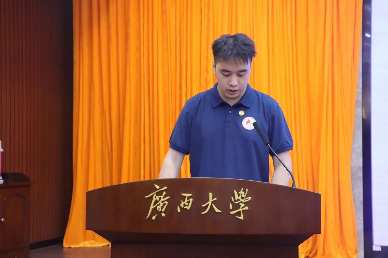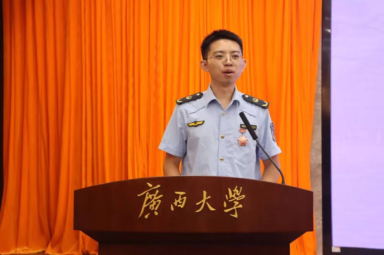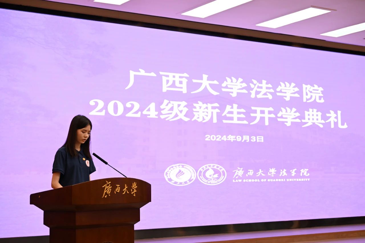 2024级本科生李璐潘作为本科新生代表发言。她表示,自己在梦想的指引下一路披荆斩棘来到了广西大学,今后仍将不忘初心,积极进取,努力践行“诚恳朴诚”的校风,怀揣探索的勇气和求知的渴望,肩扛守护正义的重担和追求真理的使命。她将以法治之名,担负起对社会的责任,誓将为构建法治社会、捍卫法律尊严而矢志不渝。