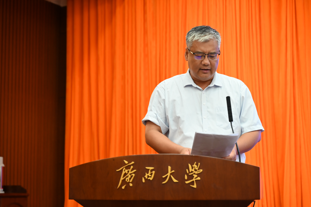 迎八方学子,育法学英才,2024年9月3日晚,广西大学法学院2024级新生开学典礼在君武楼玉林厅隆重举行。法学院党委书记余云宇、院长许光耀等院党政领导班子成员,教师代表及优秀校友代表出席,法学院2024级三百余位新生同学参加典礼。典礼由院党委副书记韦兴剑主持。