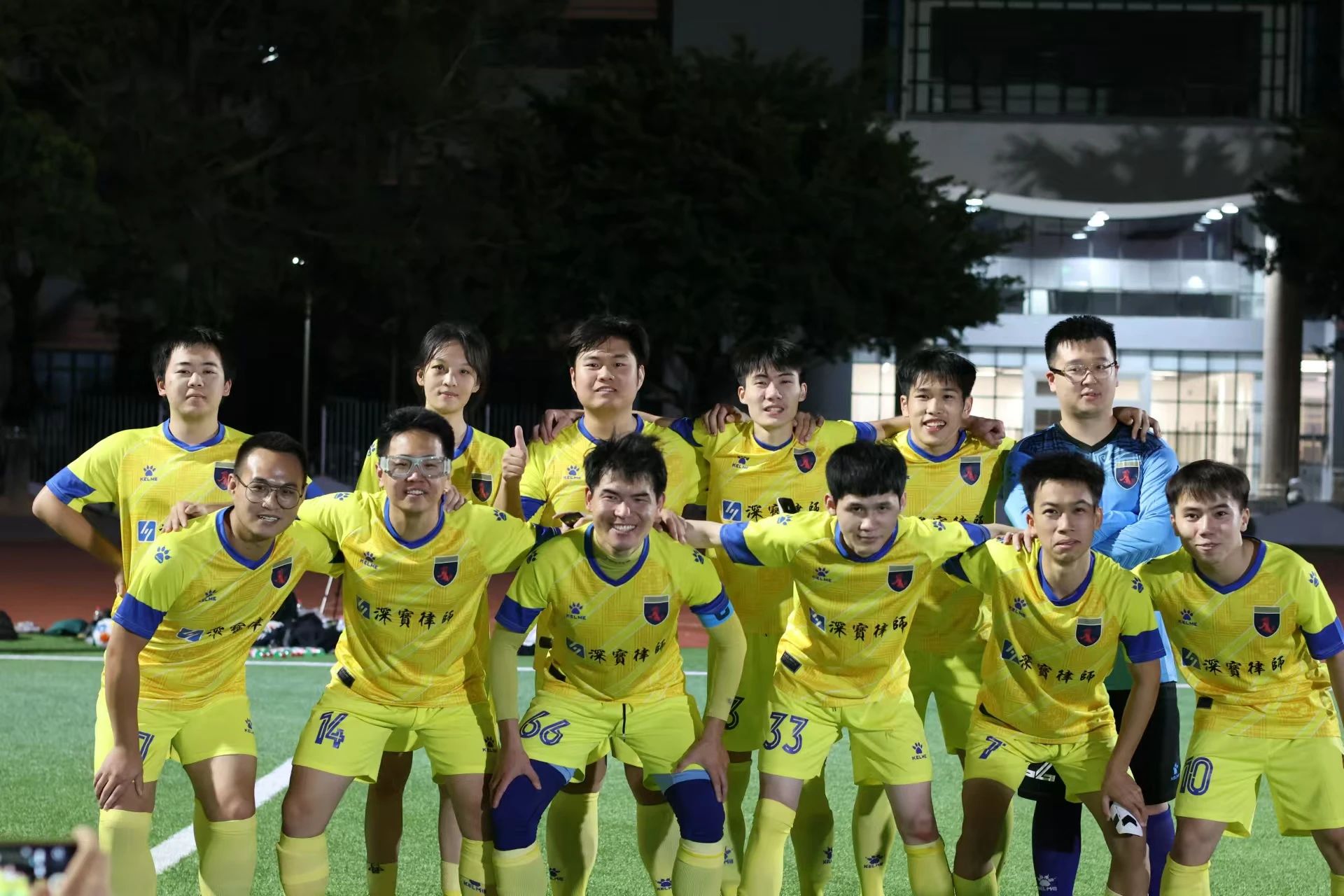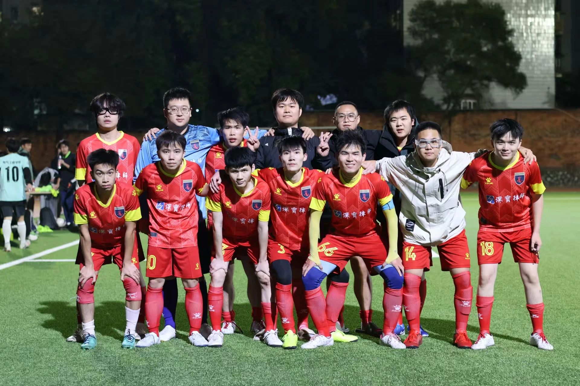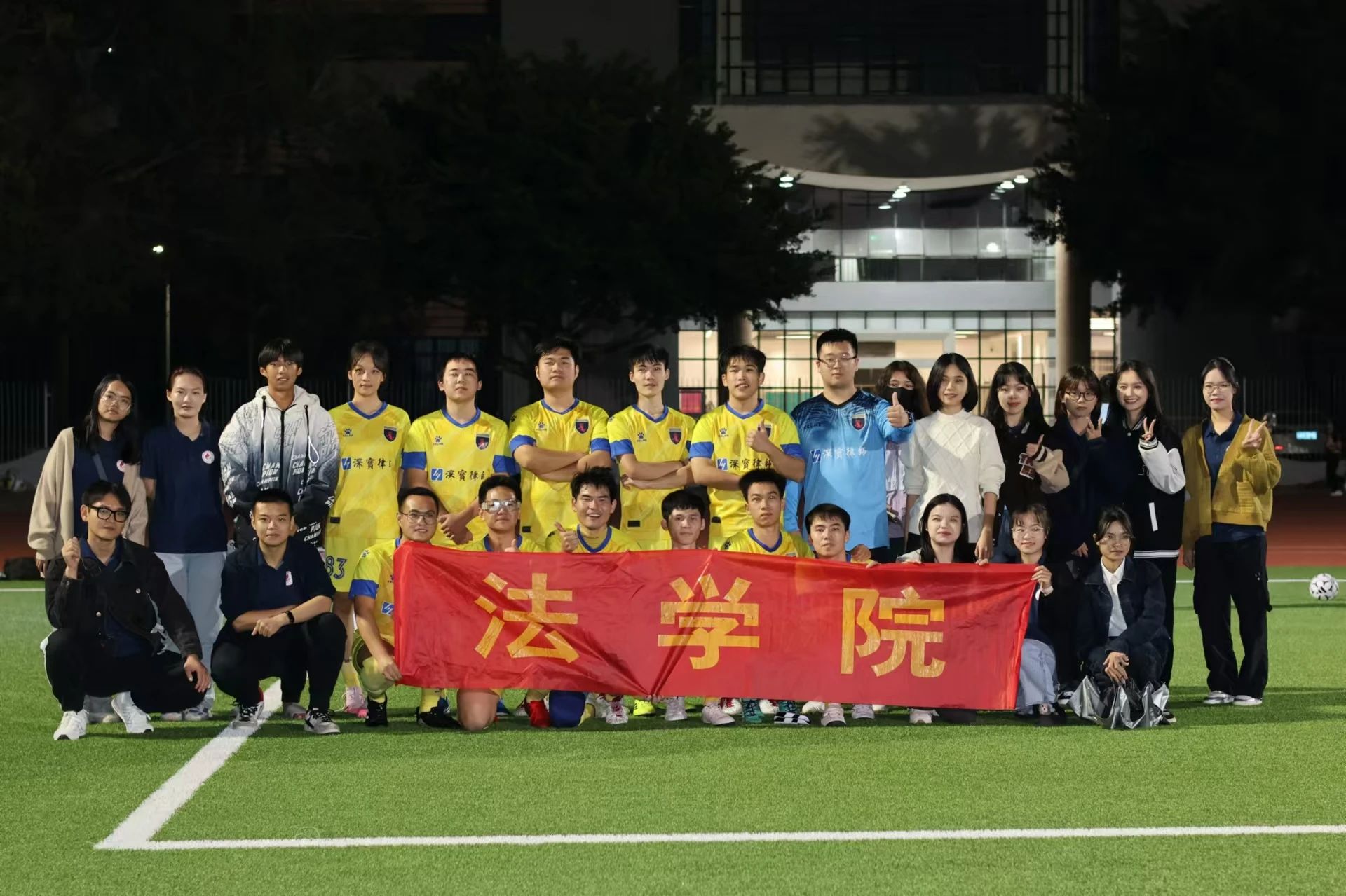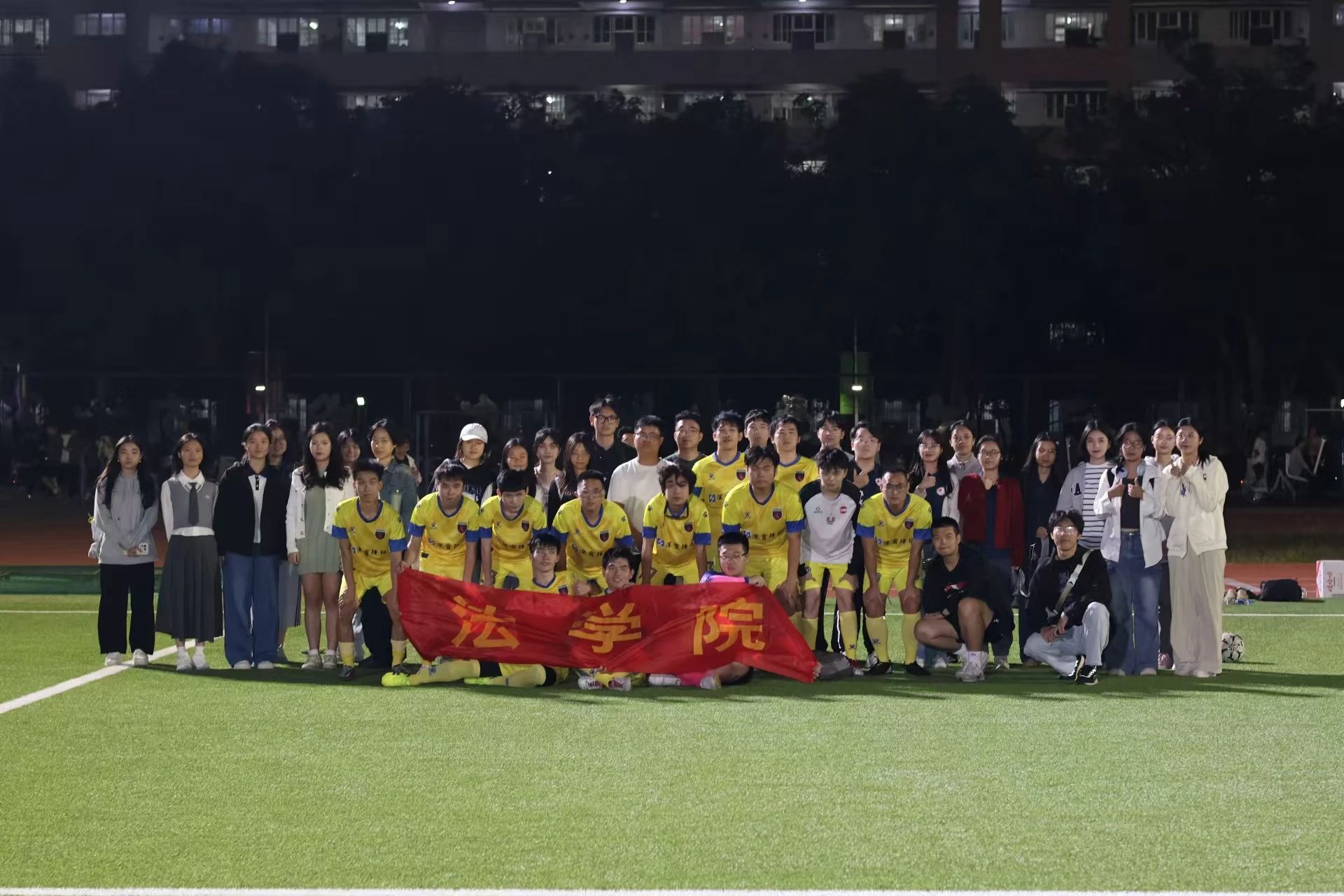 图/我院足球队队员与法学院观众、工作人员合影
