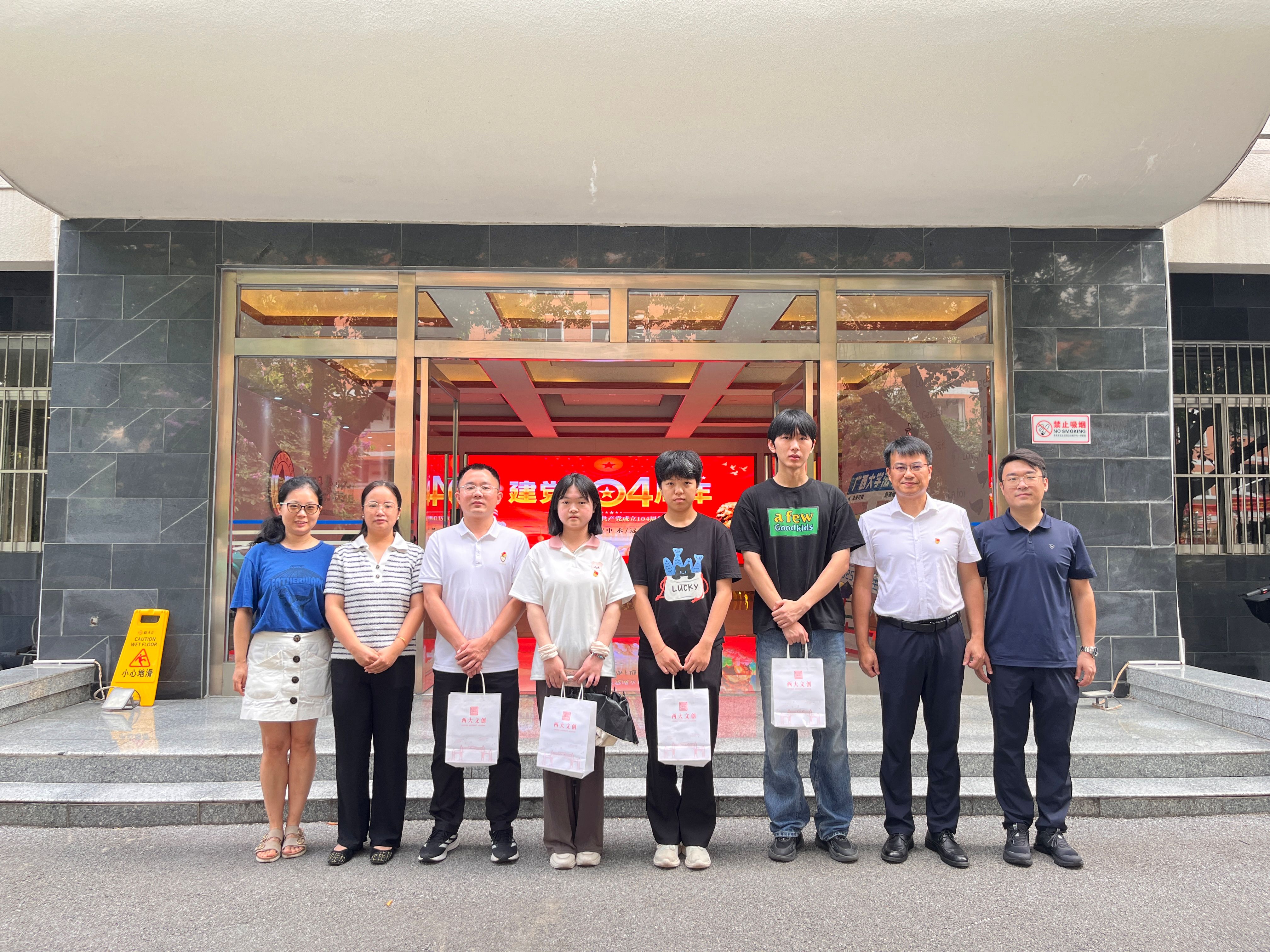 为庆祝中国共产党成立104周年,传承党的光荣传统和优良作风,进一步增强党组织的凝聚力和向心力,7月1日,法学院党委书记余云宇、院党委副书记韦兴剑、副院长熊超、院团委书记申孟鑫、专职组织员蔡舒姝等,走访慰问师生党员,向他们送去党组织的关怀与温暖。