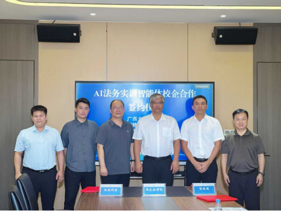2025年9月17日,广西大学法学院与广西智桂通科技有限公司、广西智乘科技有限公司,于中国东盟数字经济产业园举行AI法务实训智能体校企三方合作协议签约仪式,为人工智能与法学教育的深度融合掀开崭新篇章。