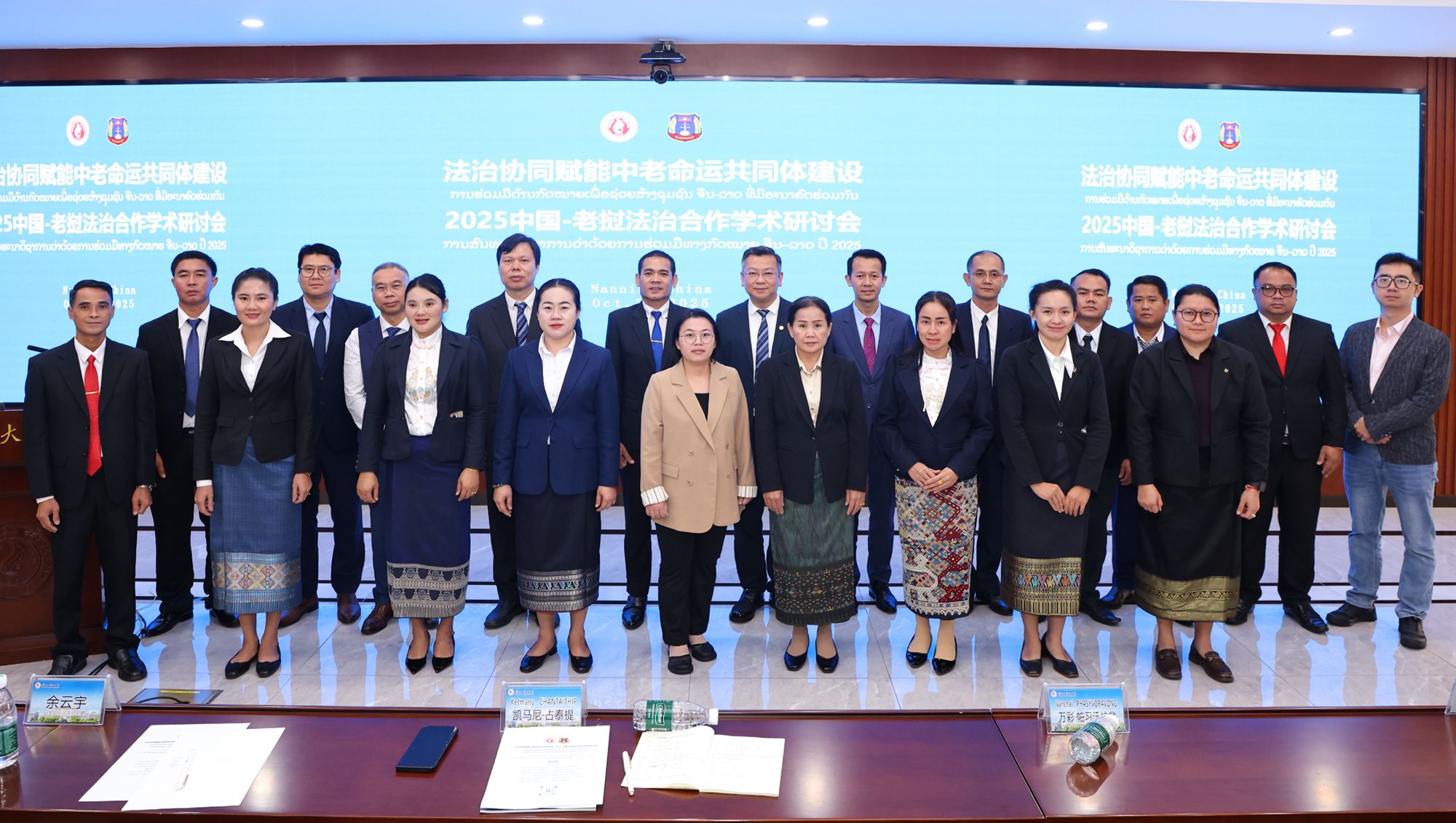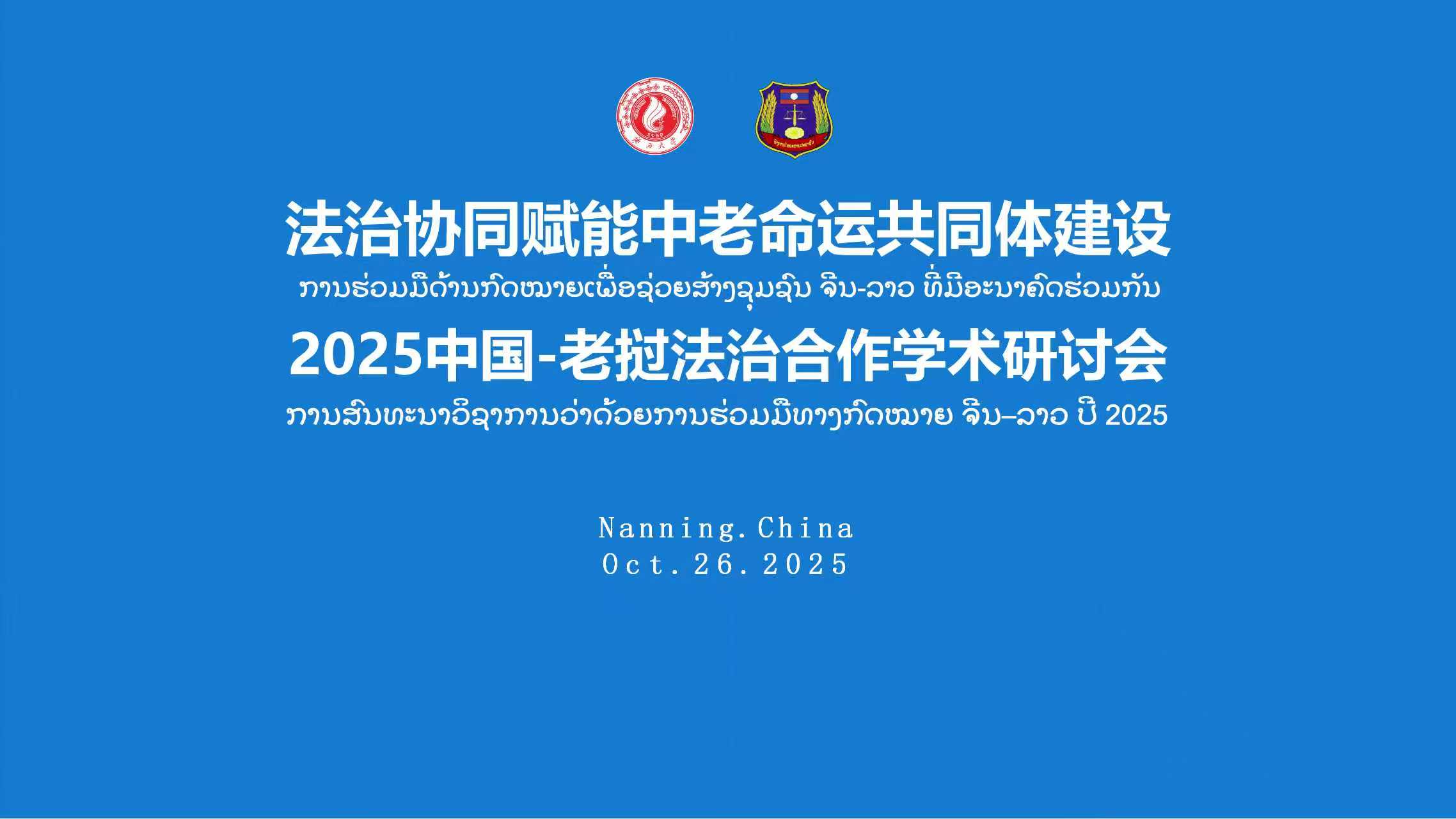10月26日,由老挝人民民主共和国最高人民检察院与广西大学联合主办的2025中国-老挝法治合作学术研讨会在君武馆召开。研讨会以“法治协同赋能中老命运共同体建设”为题,来自老挝最高人民检察院的16名检察官与中国老挝法律服务中心的律师专家代表、我校法学专业师生代表共100多人参会。