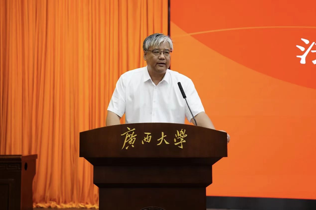 八桂大地喜迎各方学子,齐心共育法学时代新人。2025年9月15日晚,广西大学法学院2025级新生开学典礼在君武楼玉林厅隆重启幕。法学院党委书记余云宇、院长许光耀等院党政领导班子成员及教师代表出席,2025级全体新生共同参加典礼。典礼由法学院党委副书记韦兴剑主持。
