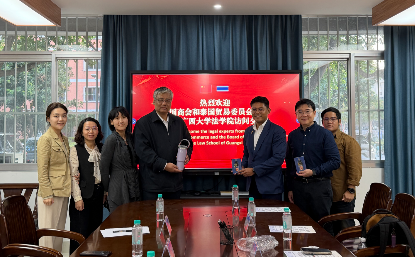 许光耀向泰国商会和泰国贸易院代表的到访表示热烈欢迎,他介绍了广西大学法学院的办学历史、学科特色、师资力量以及在人才培养和科学研究方面的基本情况,还特别强调,法学院近年来积极与包括泰国在内的东盟国家高校和法律机构开展合作,取得丰硕成果。他建议双方可以通过联合举办“中泰反垄断法学术研讨会”等方式开启合作,共享法律学术前沿动态。