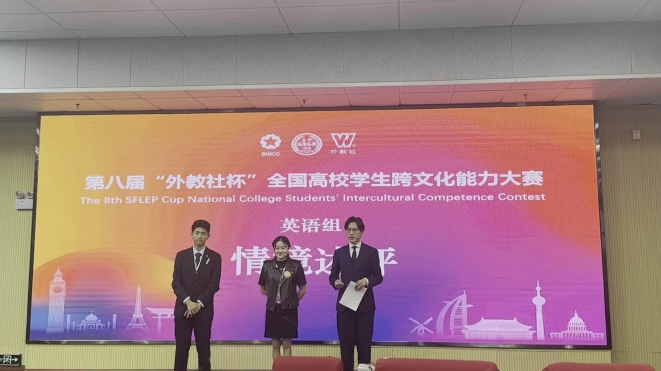 11月22日,第八届“外教社杯”全国高校学生跨文化能力大赛广西赛区比赛圆满落幕。大赛以“坚定文化自信,增进国际理解”为主题,旨在搭建跨文化交际能力展示平台,以赛促学培养具有中国情怀和国际视野的复合型国际化人才,助力中华文化国际传播与中外文明交流互鉴。广西民族大学、桂林理工大学、南宁师范大学等多所高校队伍参与本次大赛。广西大学代表队由法学院法学专业王忠瑞与外国语学院越南语专业李偲瑶、化学化工学院化学工程与工艺专业曾泊涵3位同学组成,他们在外国语学院教师杨颖、韦月丽指导下,初赛以及省级复赛、决赛均以第一名成绩晋级,最终斩获区级决赛特等奖,并成功晋级全国总决赛,为学校赢得了荣誉!