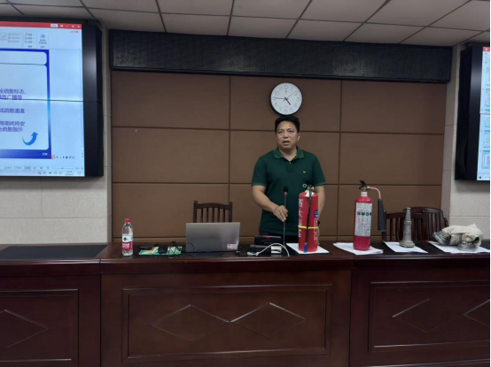 校保卫处黄光电老师围绕火灾基础理论、火灾事故等级划分等核心内容对参训师生进行消防专题培训。他结合电动车电池室内充电起火等真实案例剖析五大火灾诱因,并针对实验室用电、违规充电、易燃易爆物品存放等环节作出安全警示,引导师生树立“安全第一、预防为主”的理念。在实操教学中,他重点讲解干粉灭火器、气体灭火器、消防水带等器材的适用场景与使用方法,现场演示灭火器操作要领,结合实验室火情场景讲解应急处置与科学逃生要点,指导参训师生进行实操练习。