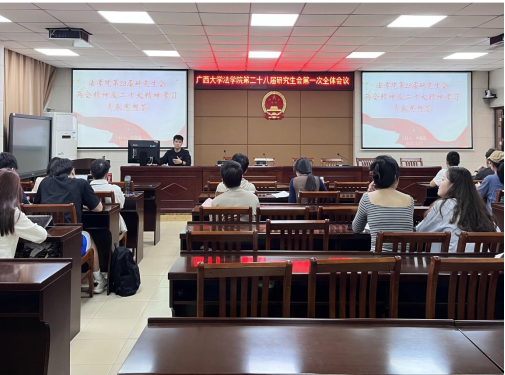 为深入学习贯彻党的二十大精神,热烈庆祝全国两会胜利召开,2023年3月17日下午,我院第二十八届研究生会第一次全体会议在法学院201教室召开,本次会议由法学院研究生会执行主席申骁选主持。