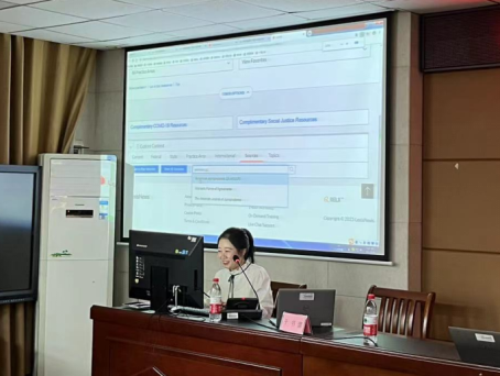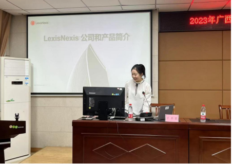 讲座开始,由于书蕾老师和钟淇胤老师向同学们简要介绍了Lexis Nexis公司的发展历史、如何进入Lexis法律数据库以及如何使用Lexis的功能。律商联讯集团是世界领先的法律、专利、税务和商业资讯服务商,广西大学学生可以通过广西大学图书馆网站搜索Lexis进入数据库,同学们可以通过Lexis 获得全球20多个国家及地区的法律法规、案例、论文等法律信息。