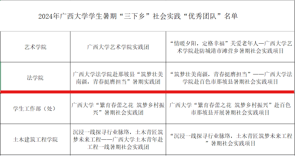 2024年广西大学学生暑期“三下乡”社会实践“优秀团队”名单