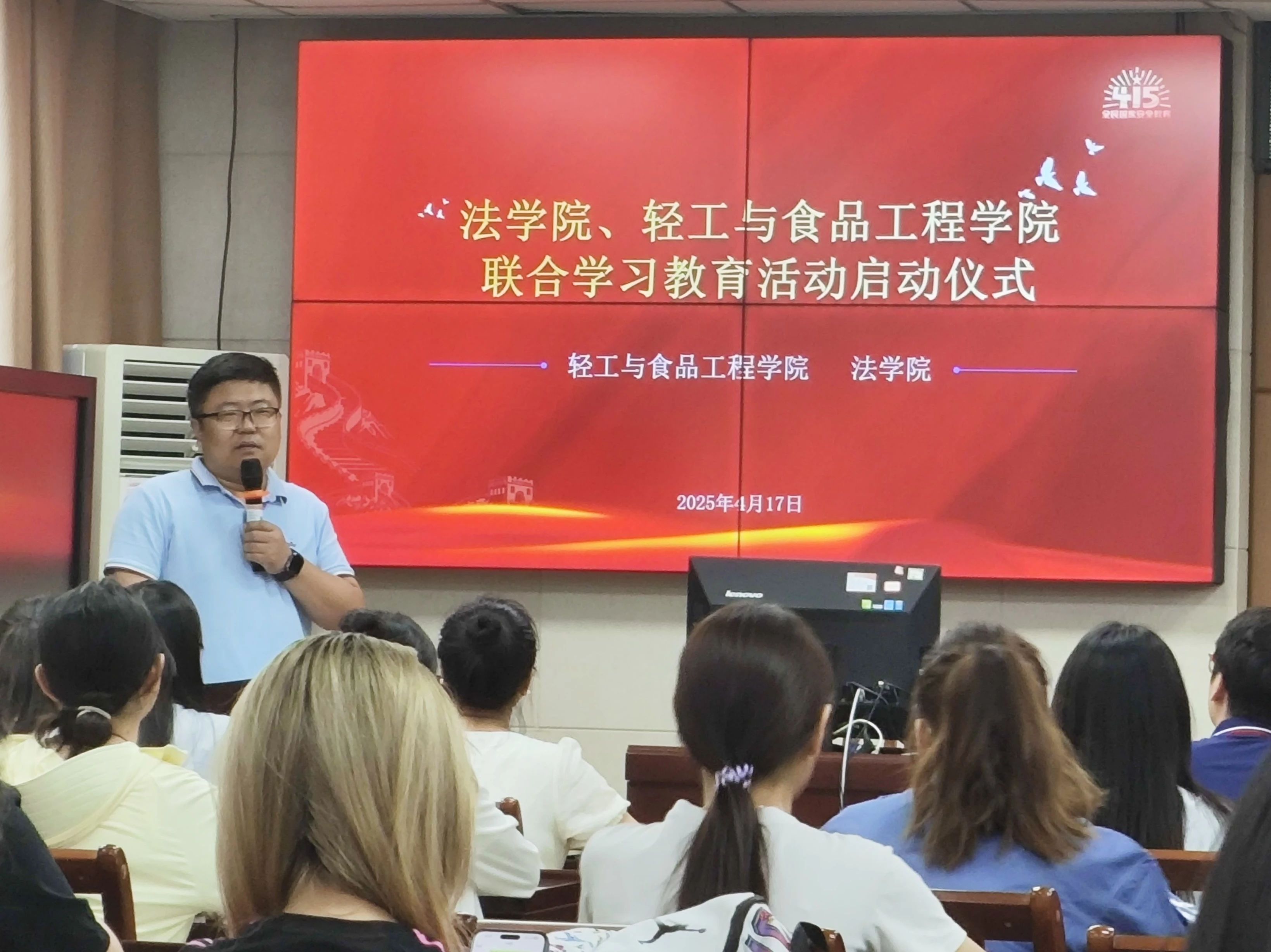 贯彻落实上级有关文件精神和学工处关于开展反电信诈骗、国家安全、精神文明等教育活动的通知,综合推进相关宣传教育工作,加强安全教育、法治教育,提升学生反诈骗意识与文明素养,促进两院师生交流,4月17日中午,我院与轻工与食品工程学院在法学院201会议室举行联合学习教育启动仪式。法学院党委副书记韦兴剑、校保卫处金中州老师、校学工部罗苑老师,以及两个学院的辅导员、结对学生班级代表参加了本次活动。活动由法学院党委委员、团委书记申孟鑫主持。