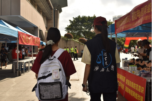 迎新现场,志愿者们在人群中忙碌穿梭,耐心为新生答疑解惑、协助整理行囊,用细致服务与满腔热情,让新同学初入校园便感受到法学院的人文关怀和温暖氛围。