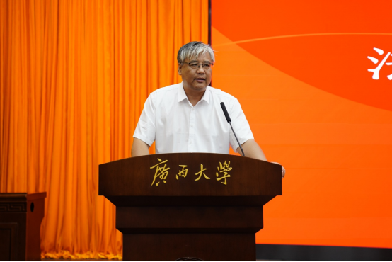 八桂大地喜迎各方学子,齐心共育法学时代新人。2025年9月15日晚,广西大学法学院2025级新生开学典礼在君武楼玉林厅隆重启幕。法学院党委书记余云宇、院长许光耀等院党政领导班子成员及教师代表出席,2025级全体新生共同参加典礼。典礼由法学院党委副书记韦兴剑主持。