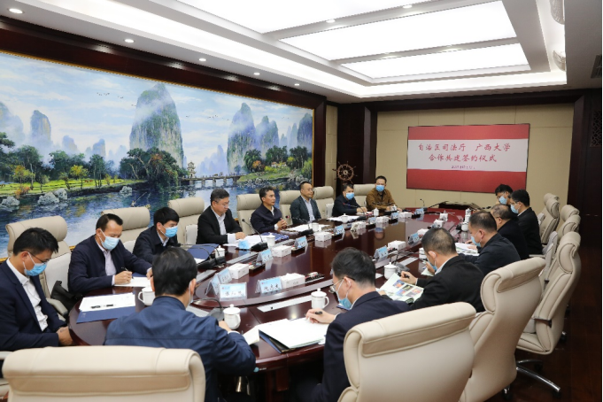 王乃学在致辞中对自治区司法厅长期以来对广西大学的指导和支持表示感谢,充分肯定了自治区司法厅为法治广西、平安广西作出的重要贡献。他表示,广西大学在法学等社会科学领域具有较好学科及人才优势,深化合作共建将对广西大学法学学科建设和人才培养具有推动作用,希望双方对标合作清单,推动合作走深走实,对标政策优势,抓好成果落实落地,完善协作机制,确保合作共建见行见效。