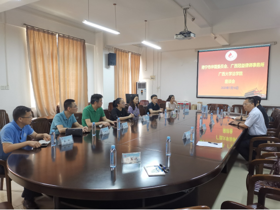 2020年7月16日,南宁市仲裁委、广西冠益律师事务所到我院访问并与学院领导和教师代表座谈。