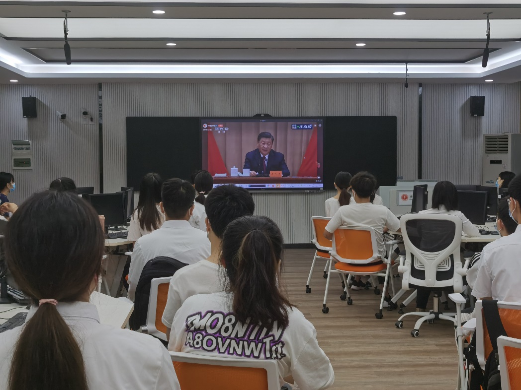 2022年5月10日上午10时,广西大学法学院青年老师、本科2019级各团支部团员代表、学生会骨干在法学院402教室观看庆祝中国共产主义青年团成立100周年大会直播,并认真学习习近平总书记重要讲话。