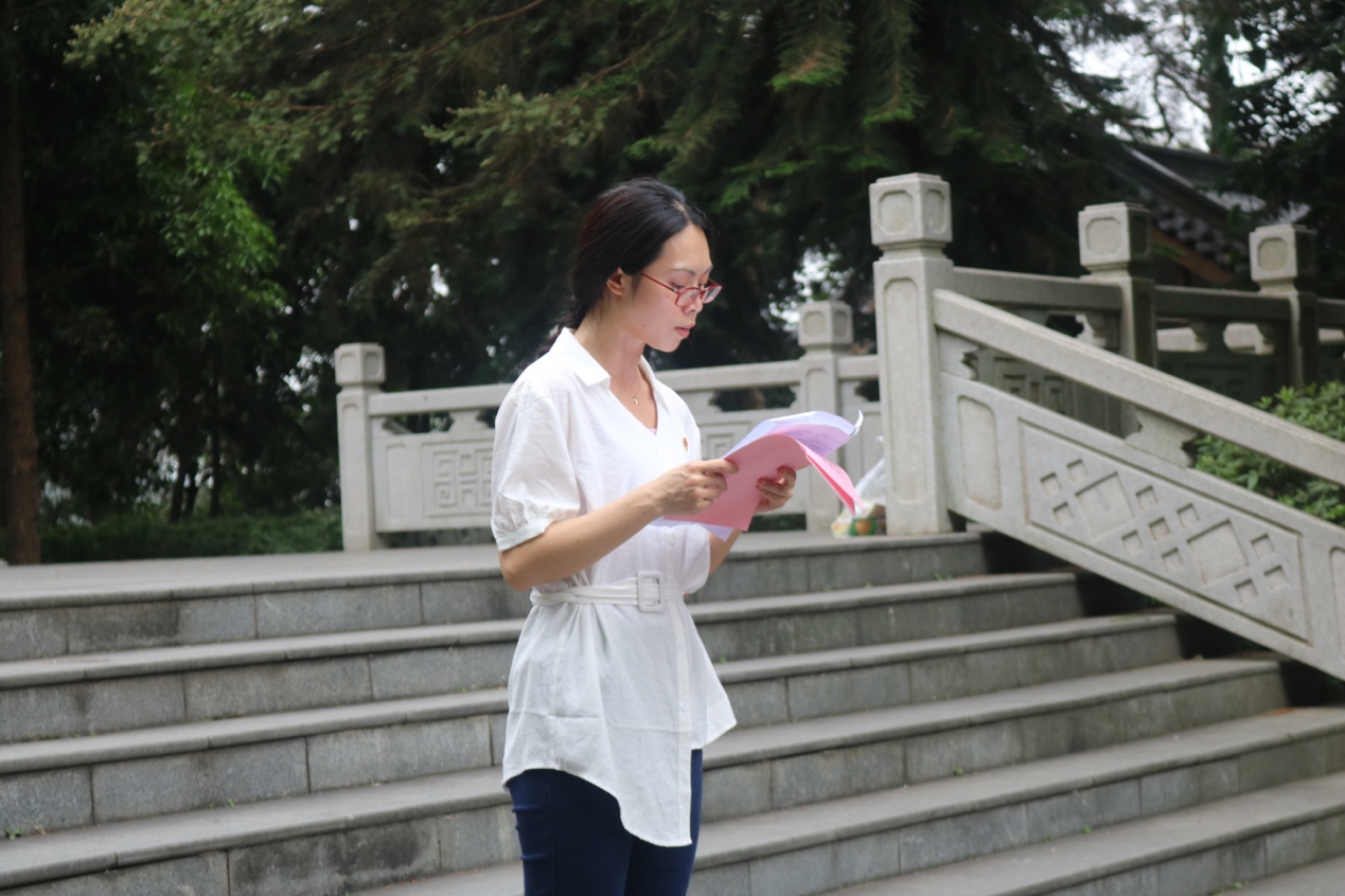 腥风血雨浴精神,承前矢志更芬芳。在陈焜如老师的带领下,法学院青年在烈士纪念碑下重温入团誓词、党员同志重温入党誓词,声声掷地,字字铿锵。在秀野山林中,同学们的头脑明澈且宁静,内心坚毅而澎湃。