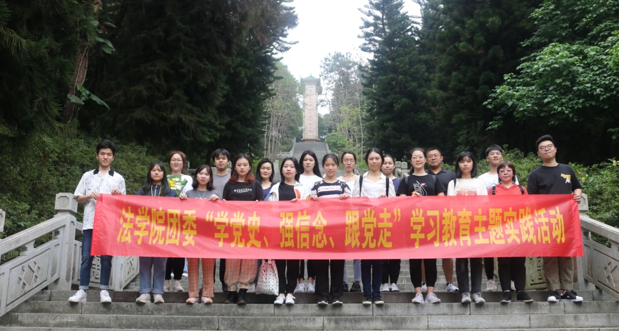 2021年3月30日,法学院团委陈焜如老师和庞红老师带领法学院团委18名青年学生代表赴位于青秀山的广西学生军纪念碑,开展“学党史、强信念、跟党走”学习教育主题实践活动。临此清明之际,追悼英勇殉国的先烈,重温精诚卫国的情怀,坚定忠党爱国的意志。
