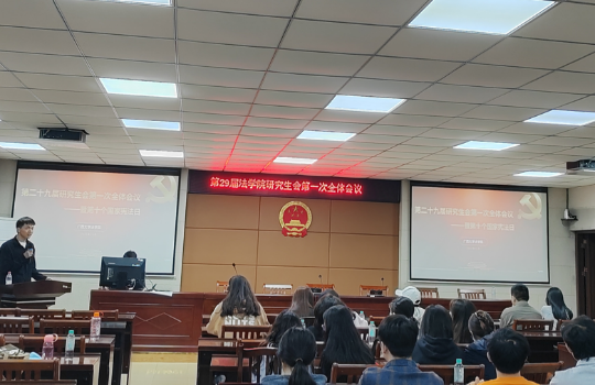 为深入学习贯彻党的二十大精神,强化宪法意识,2023年12月12日晚,广西大学法学院第二十九届研究生会第一次全体会议在法学院201教室召开,本次会议由法学院研究生会主席团成员从炜主持。