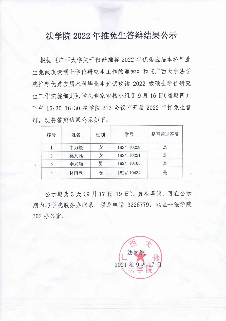 【下一条】广西大学法学院推荐2022年优秀应届本科毕业生免试攻读硕士学位研究生工作实施细则