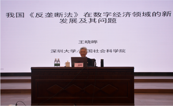 3月4日下午,中国法学会经济法学研究会副会长兼竞争法专业委员会主任、深圳大学特聘教授、中国社会科学院法学研究所二级研究员、博士生导师王晓晔教授,在君武馆玉林厅作“我国反垄断法在数字经济领域的新发展及其问题”的讲座。本次讲座由广西大学法学院副院长许光耀教授主持,广西大学法学院本科生、硕士研究生近三百人参加了此次讲座。