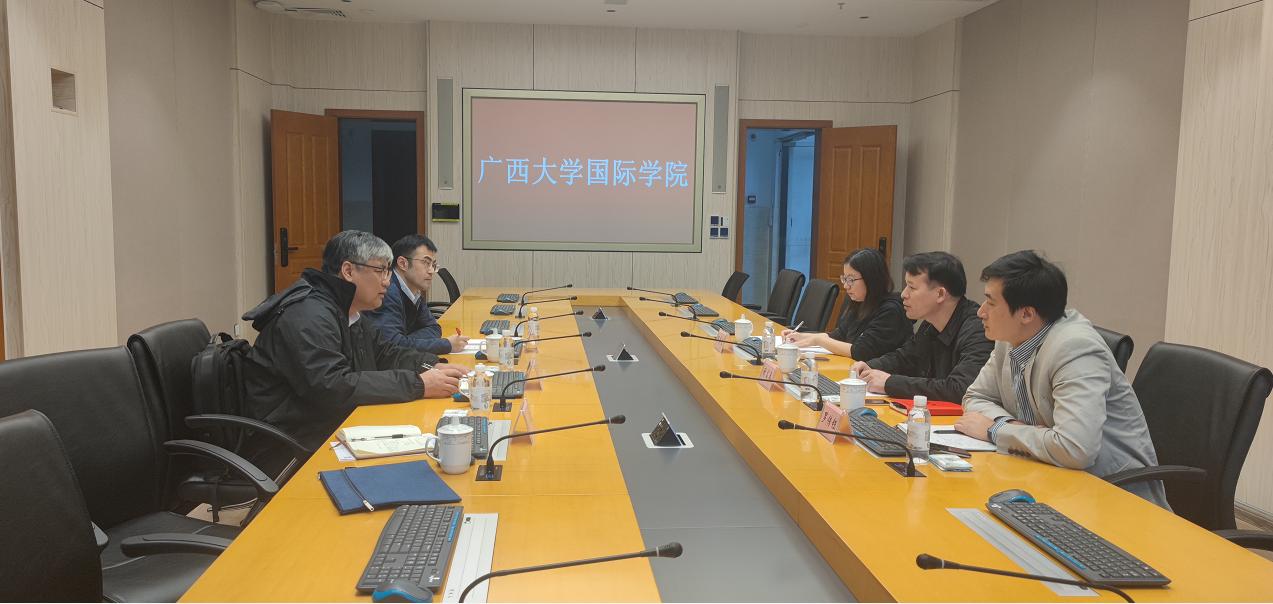 3月29日上午,我院副院长许光耀带队前往广西大学国际学院和中国—东盟研究院,调研交流学科建设、科学研究等方面工作,洽谈推进合作。国际学院副院长闭富春、中国—东盟研究院副院长兼国际学院院长助理缪慧星、中国—东盟研究院副院长罗传钰热情接见并座谈交流。我院董笃笃副教授、科研秘书杨红波副研究员随同参加调研。