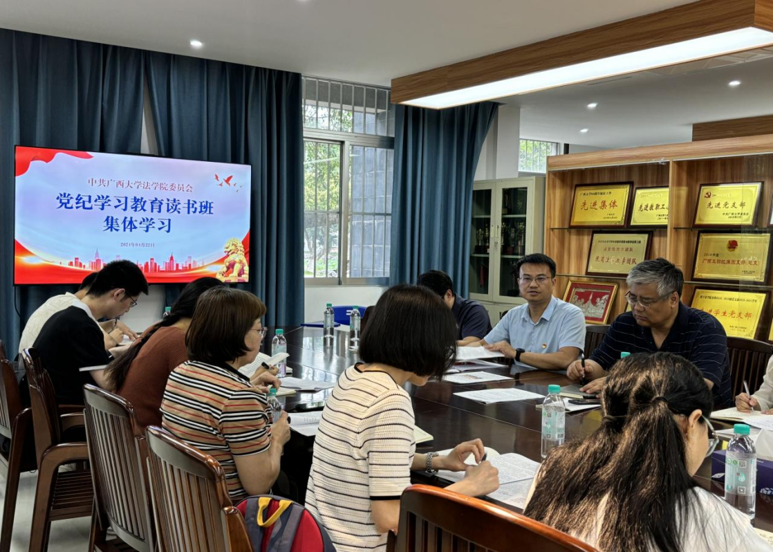 会上,院党委书记余云宇对《法学院党委党纪学习教育实施方案》进行解读,并领学中共中央关于印发《中国共产党纪律处分条例》的通知精神。此次专题读书班为期两天,与会人员在会上集体学习了习近平总书记关于开展党纪学习教育的重要讲话和重要指示批示精神,原原本本学习了《中国共产党纪律处分条例》第一章。
